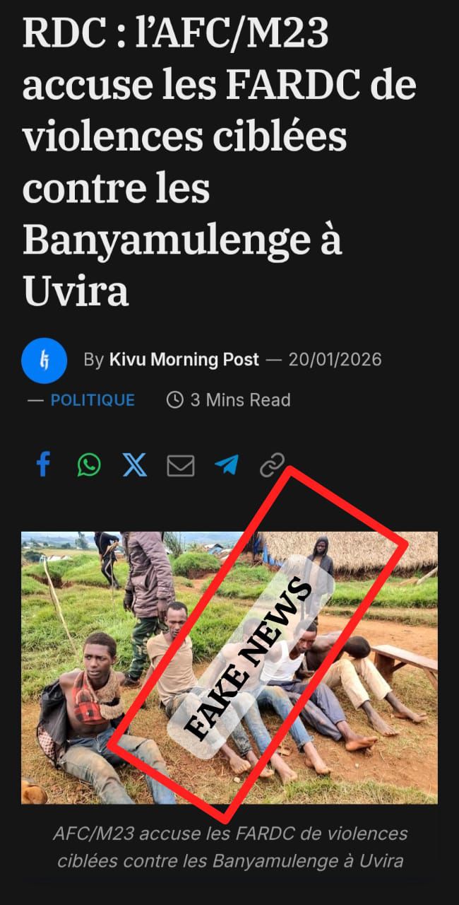 Cette publication est donc trompeuse et s’inscrit dans une narration déjà observée dans l’espace numérique, visant à justifier la présence du M23 et de ses soutiens en présentant l’État congolais comme persécuteur d’une communauté spécifique, sans fondement factuel vérifié.